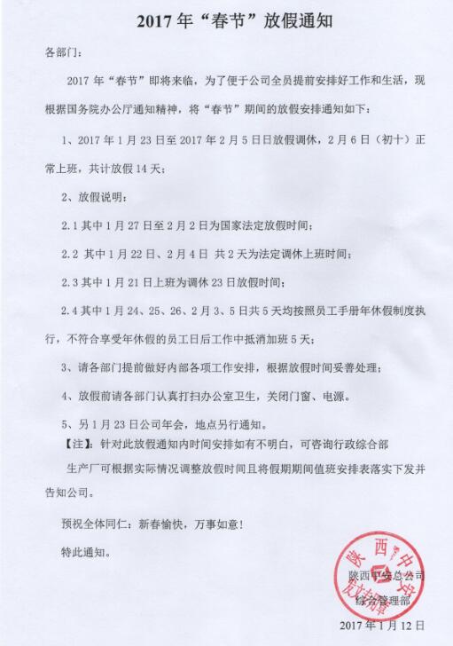 2017年放假通知